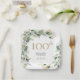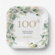These exquisite, watercolor eucalyptus with gold leaf embellishments 100th birthday party 7" square paper plates are perfect for celebrating your wife, mum, sister, friend, grandmother, great grandmother. Their soft flowy design is modern yet traditional. They'll look fabulous on your counters, buffet or tables. Select Personalise this template to make them uniquely your own. In seconds you will see your stunning 100th birthday plates.