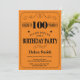 100th Birthday Invitation Black and Orange Typography. Black and Orange Background. Adult Birthday. Male Men or Women Birthday. Kids Boy or Girl Lady Teen Teenage Bday Invite. 13th 15th 16th 18th 20th 21st 30th 40th 50th 60th 70th 80th 90th 100th. Any Age. For further customisation, please click the "Customise it" button and use our design tool to modify this template.