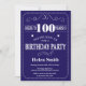100th Birthday Invitation Navy Blue and White Typography. Navy Blue and White Background. Adult Birthday. Male Men or Women Birthday. Kids Boy or Girl Lady Teen Teenage Bday Invite. 13th 15th 16th 18th 20th 21st 30th 40th 50th 60th 70th 80th 90th 100th. Any Age. For further customisation, please click the "Customise it" button and use our design tool to modify this template.