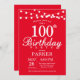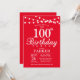 100th Birthday Invitation with String Lights. Red Background. 13th 15th 16th 18th 20th 21st 30th 40th 50th 60th 70th 80th 90th 100th, Any age. For further customisation, please click the "Customise it" button and use our design tool to modify this template.