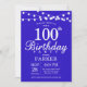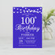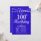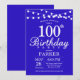 100th Birthday Invitation with String Lights. Royal Blue Background. 13th 15th 16th 18th 20th 21st 30th 40th 50th 60th 70th 80th 90th 100th, Any age. For further customisation, please click the "Customise it" button and use our design tool to modify this template.