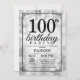 100th Birthday Invitation Silver Glitter