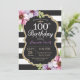 100th Birthday Invitation for women. Black and Gold Birthday Party Invite. Gold Glitter. Purple Watercolor Floral Flower. Black and White Stripes. Chalkboard. Printable Digital. For further customisation, please click the "Customise it" button and use our design tool to modify this template.
