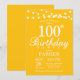 100th Birthday Invitation with String Lights.Yellow Background. Men or Women Birthday. 13th 15th 16th 18th 20th 21st 30th 40th 50th 60th 70th 80th 90th 100th, Any age. For further customisation, please click the "Customise it" button and use our design tool to modify this template.