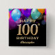 100th Birthday Party Black and Gold Colourful Balloons and Confetti Button. For further customisation, please click the "Customise it" button and use our design tool to modify this template.