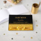 Elegant, classic, glamorous and feminine. A faux gold colored ribbon with a bow. A guestbook for a 100th birthday party. The name is written with golden trendy hand lettered style script. Black background.
