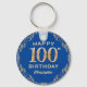 100th Birthday Party Blue and Gold Glitter Frame Key Ring