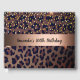 Elegant, glamourous and feminine for a 100th birthday party with brown, golden and black leopard print, decorated with golden confetti. Template for a name and age 100. A faux bronze metallic looking band. Black hand lettered style script, letters.