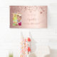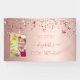 A banner for a girly and glamourous 100th birthday party. A faux rose gold metallic looking background with shiny and glittery dripping stars. Personalise and add your own photo, a name written in dark rose gold with a large modern hand lettered style script with swashes. To keep the swashes only delete the sample name, leave the spaces or emoji's in front and after the name. Templates for a date and age 100.