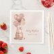 These beautiful 100th birthday party dinner napkins featuring a 2-layer rose gold cake with rose gold balloons, the number 100 in rose gold, the guest of honour's name in a fabulous script font and the date of the party in a modern cap font would be perfect for celebrating your wife, mum, sister, friend, aunt, grandmother, great grandmother. They are traditional and classic while being fresh, modern and contemporary. The background is a lovely coordinating soft rose gold foil.