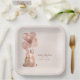 These beautiful 100th birthday party 9" square paper plates featuring a 2-layer rose gold cake with rose gold balloons, the number 100 in rose gold, the guest of honour's name in a fabulous script font and the date of the party in a modern cap font would be perfect for celebrating your wife, mum, sister, friend, aunt, grandmother, great grandmother. They are traditional and classic while being fresh, modern and contemporary. The background is a lovely coordinating soft rose gold foil. They'll look fabulous on your tables, buffet or counters.
