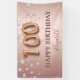 Elegant, classic, glamourous and girly for a 100th birthday party. Rose gold and blush pink, gradient background. Decorated with rose gold faux diamonds. Personalise and add a name. With the text: Happy Birthday. The name is written with a modern dark rose coloured hand lettered style script. Number 100 is written with a balloon style font.