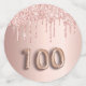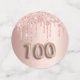 Girly and feminine confetti for a 100th birthday party table setting. A rose gold faux metallic, foil looking background decorated with faux rose gold glitter drips. Personalise and add her name/text. Dark rose gold coloured letters. Some confetti chips with name and date, others with number 100 written with a balloon style fonts, and with the text Happy Birthday.