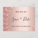 An elegant and simple Save the Date card for a 100th birthday party. A chic rose gold background decorated pink and rose gold watercolored botanical florals. Templates for a date and name/age 100. Black coloured letters. The text: Save the Date is written with a large trendy hand lettered style script.