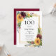 This sunflowers 100th Birthday invitation is perfect for celebrating your wife, mum, sister, aunt, friend, grandmother, great grandmother. It's lovely watercolor sunflowers and burgundy roses and wispy wildflowers on a double gold frame blend beautifully with the clean type make it stunning, modern yet classic! It's coordinating burgundy watercolor wash back adds an extra touch. It's super easy to make these invitations by selecting Personalise this template and typing in your information. In a flash you can see how gorgeous your invitations will be!