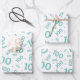 100th Birthday Teal/White Random Number Pattern Wrapping Paper Sheet