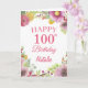 100th Birthday Watercolor Floral Flowers Pink Card with personalised name and age. For further customisation, please click the "Customise it" button and use our design tool to modify this template.
