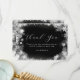 Elegant winter wonderland 100th birthday thank you card features beautiful calligraphy surrounded by a lush snowflake and snow border. The snowflakes pop against the dark black background. You can actually change the background colour to any colour. All of the remaining text can be edited. This item is part of the Winter Wonderland Snowflake collection. It contains the DIY templates you need to create a unique invitation suite and matching party decorations. The invites are available in both paper and digital downloads.