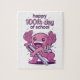 Cute design featuring an axolotl wearing a backpack and holding a big pen with the quote "Happy 100th day of school". Happy 100 days of school or Happy 100th day of Kindergarten.
