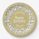 This is a gold and white random number pattern with fancy scallops and custom text.  The gold milestone number 100 is scattered over a white background.  The design is a very cool fun way to celebrate the past 100 years at your over-the-hill, 100th birthday party.