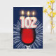 A birthday glass of wine with candles. The candles are made up of the number 102, for a 102nd birthday. Fireworks are exploding in the background. A birthday card suitable for anybody, male or female.
