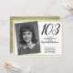 This pretty white and gold 103rd birthday invitation for her includes a customisable photo with a faux watercolor paper texture, and will set a fun and celebratory tone. Note: The foil border is printed and not actual shiny foil!