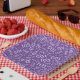 105th Birthday Party Purple/White Random Pattern Paper Plate