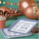 This over-the-hill design has a blue and white random number pattern with the milestone number 105 repeated in varied sizes and angles. There is a white rounded square in the centre for your text and a blue and white frame around the rim.