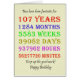 107th birthday card counting down the years, days, months, hours, and minutes. A card to give pause for thought! Leap years have been taken into account!
