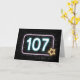 Glowing neon sign with a star on a dark brick city wall for 107th birthday.