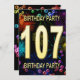 107th Birthday Party Invitation Fireworks Bubbles