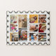 10 Photo Modern Groovy Daisy Flower Stylish Name Jigsaw Puzzle features ten of your favourite pictures for an easy and quick DIY add your own photo collage. Personalise with your name and surrounded with a retro groovy daisy flower and chequerboard pattern. Makes a perfect gift for Christmas, birthdays, Mother's Day, Father's Day. sisters, best friends and more. Designed by © Evco Studio