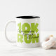 Spring green text that reads 10K RUN and black text that reads Determination Strength Endurance on running T-shirts, hoodies, buttons, bags, mugs, stickers, and other products for anyone who is training for or already has run a 10K!