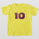 The t-shirt feels and looks great quality, a good thick cotton. It will be a little big for my son, but that means he will be able to wear it and not out grow it too soon. The print was as described on the order when personalised. True size, shape and colour T-shirt- thanks.