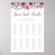 This beautiful, pink floral wedding seating chart has 10 tables but is also available in 6 tables, 8 tables, 9 tables, 12 tables, 15 tables, 16 tables & 18 tables. Please see my Zazzle store for the full collection.