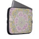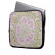 sleeve for electronics with paisley-like thistles design by Rhonda Stewart. Dominant colours are purples and greens.