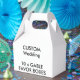 Custom Wedding 10 x GABLE FAVOR BOXES - 4" wide x 2.5" deep x 5" high. Vibrant full colour ALLOVER PRINT on high-quality card. Ships flat. Multiple purchase (bulk buy) discount saving on all favour boxes.