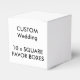 Custom Wedding 10 x SQUARE FAVOR BOXES - 2" wide x 2" deep x 2" high. Vibrant full colour ALLOVER PRINT on high-quality card. Ships flat. Multiple purchase (bulk buy) discount saving on all favour boxes.