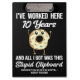 I've worked here ten years and all I got was this stupid clipboard A funny saying on a clipboard just for ten year veteran employee or co-worker, or boss or owner! A great way to show your appreciation for all of the hard work... with sarcasm, humor and gut busting laughter! Personalize this with the employee's name at the bottom of the clipboard to make it an incredibly unique and memorable gift idea.