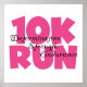 Bright pink text that reads 10K RUN and black text that reads Determination Strength Endurance on running T-shirts, hoodies, buttons, bags, mugs, stickers, and other products for anyone who is training for or already has run a 10K!