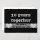 Create your own personalised, diamond tenth anniversary invitations- On the front is 3d text that looks like grey brushed metal, tin or aluminium. It reads '10 years together.' Over a translucent strip in black, shadowed letters it reads 'You're Invited to an Anniversary Party'. Faux diamond gemstone hearts adorn each end. The back has black, 3D look letters for your customised, modern 10th wedding anniversary party information. Personalise however you like. Visit our online angela65 Zazzle shop for lots of other tenth anniversary party supplies.