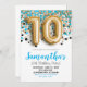 10th Birthday Blue Confetti Invitation