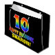 This cheerful, colourful, and fun birthday-themed gift bag design features a large number "10" and the message "HAPPY BIRTHDAY,", both coloured with a rainbow spectrum gradient inspired pattern, along with a bold yellow editable recipient name. The background is coloured black. A fun gift bag like this might be used when wrapping gifts being given to somebody in celebration of their tenth birthday. [~Z0000477]