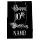 This elegant and opulent birthday gift bag design features the message “Happy 10th Birthday,” in formal script style text, on a black coloured background. It also features a personalised recipient name. An ornate birthday themed gift-bag like this might be a respectable way to wrap a gift or present being given to celebrate somebody’s tenth birthday. [~Z0000557]