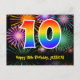 10th Birthday – Fun Fireworks Pattern + Rainbow 10 Postcard