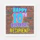 This fun birthday paper napkin design features the message “HAPPY 10TH BIRTHDAY,” having a colourful, vibrant, graffiti-inspired appearance, in addition to a customisable recipient name. The background features a brick wall inspired pattern. Paper napkins like this might be used at a birthday party for somebody who is celebrating their 10th birthday. [~Z0000534]