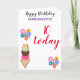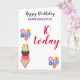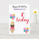 Happy 10th Birthday Granddaughter wishes. Personalise for Anyone and Any Age. 10 Today is written in deep red script. Pretty bright coloured flowers in pink blue yellow green orange, and yummy vanilla, chocolate, strawberry sprinkled ice cream cone adorn card against white background. Leave special message inside, or personalise. Smaller colourful flowers and feathered leaves on backside. Original Artwork and Card Verse Design © TamiraZDesigns