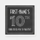 This luxurious 1920s-1930s era inspired art deco look birthday paper napkin design features a personalised name, along with the message “10TH BIRTHDAY PARTY!”. The number “10TH” has a fancy geometric lined appearance. Birthday themed paper napkins like this might be a fun way to celebrate somebody’s tenth birthday, or some other 10th event. [~Z0000659]