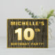 The front of this bold tenth birthday celebration/party foil invitation card features an editable name, a large number “10th”, the message “BIRTHDAY PARTY!”, and a border, all in foil. The background of the front features a rustic, yet elegant, faux wood grain appearance inspired pattern. The back features personalized details about the event, such as the date, time, location/venue, and any other information that may be useful. Customized invitations like these might be used to invite attendees/guests to a birthday party/gathering being held to honor somebody’s 10th birthday. [~Z0000598]