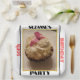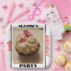 Celebrate the 10th Birthday or personalise for any age written in red text. NAME and Party is written in black text. Keep cupcake image, or Upload your own image,, inside gold colour square frame. Black lines on each side. NOTE: Image is set to Fill via Edit Design. If uploading your iimage you may need to set to Fit. Original Design by TamiraZDesigns.